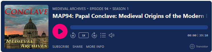Listen in to learn the Medieval origins of the papal conclave, how the conclave and voting process works. Who takes the oath of secrecy, why a popes change their names and what does the smoke mean?